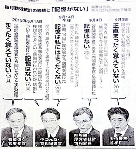 たまたま上記のようなTwitterかFaceBookの記事が出て来た。先に問題となった毎月勤労統計調査で、全数調査をすべきところを、抽出調査で済ませ、虚偽報告が行われて問題になった時の関係者の発言である。もう以前のことになるが、これを見ても安倍内閣の姿勢…